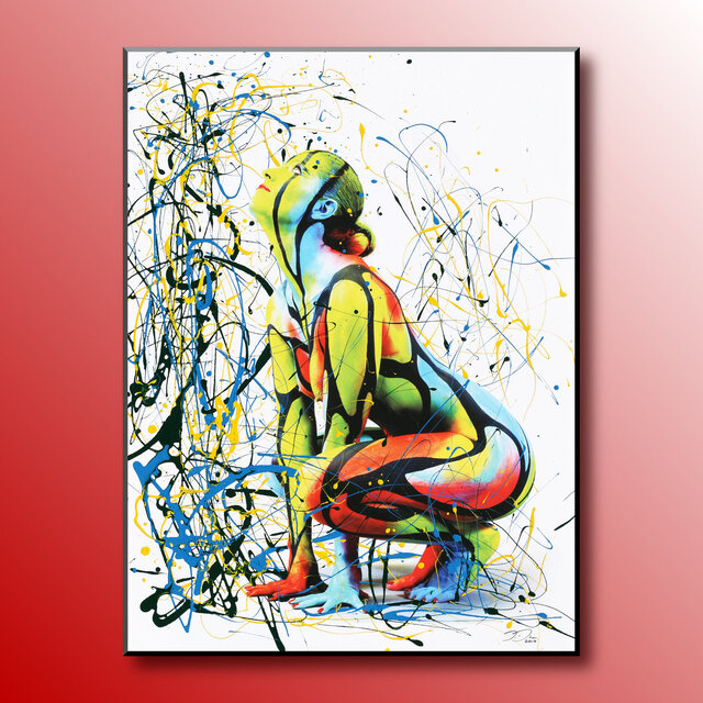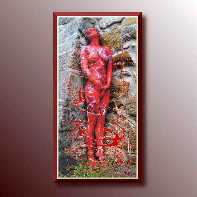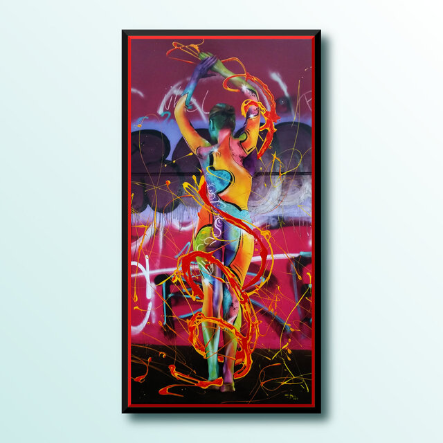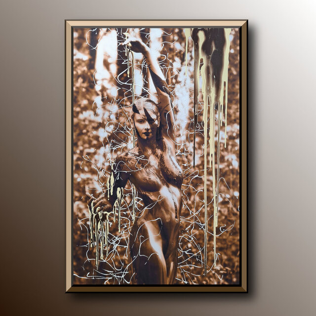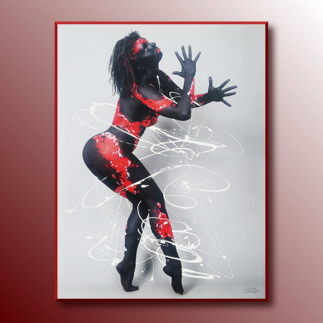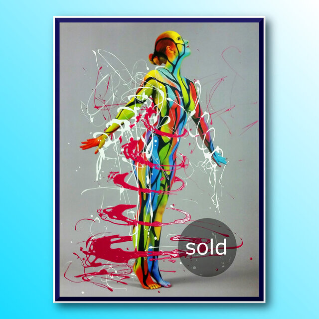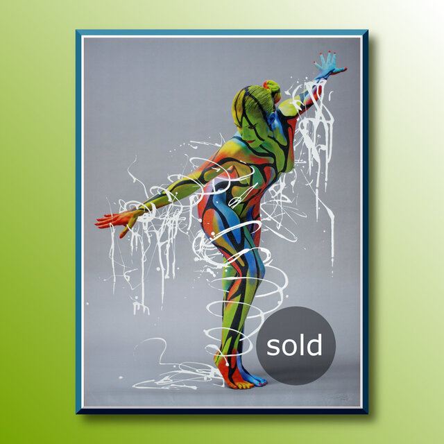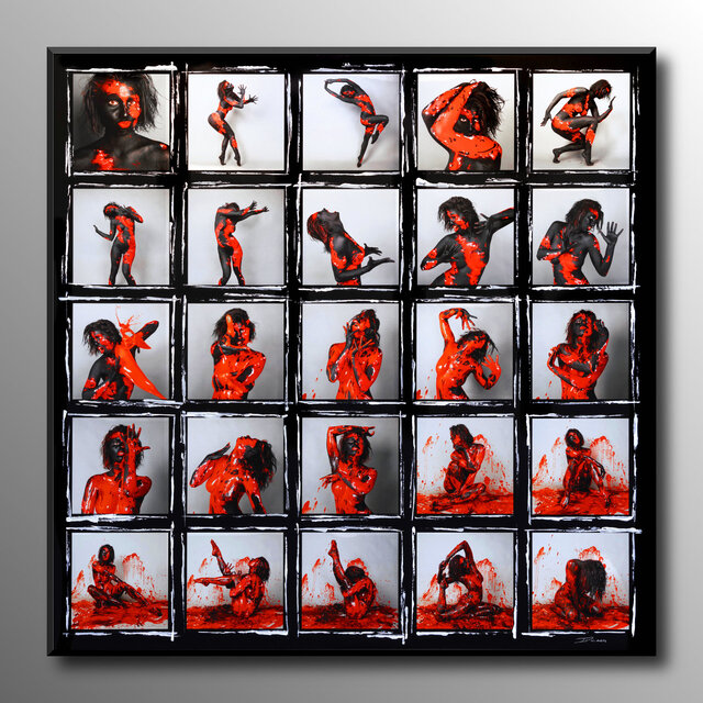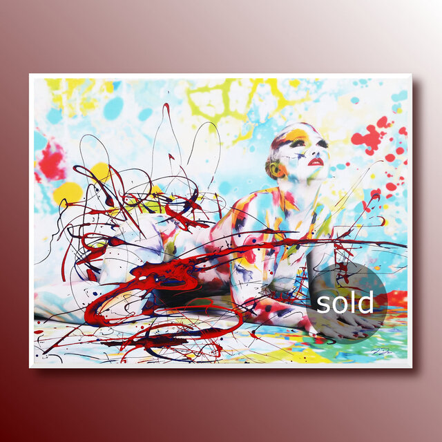 Diese Werke sind einmalige Unikate. Leinwandprints ausgesuchter Bodyart-Motive wurden in aufwendiger Anfertigung mit Acryl-Lackfarben und z.T. mit ergänzenden 3D-mixed-Materialien und -Strukturen sorgfältig gestaltet und somit zu einzigartigen Bildwerken veredelt. Eine abschließend aufgetragene, seidenmatte Firnis schützt die Farben und Oberflächen.