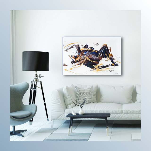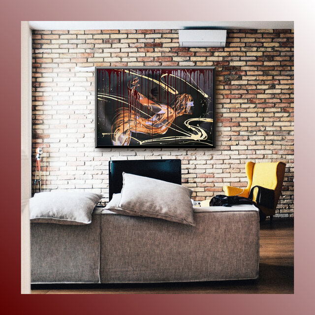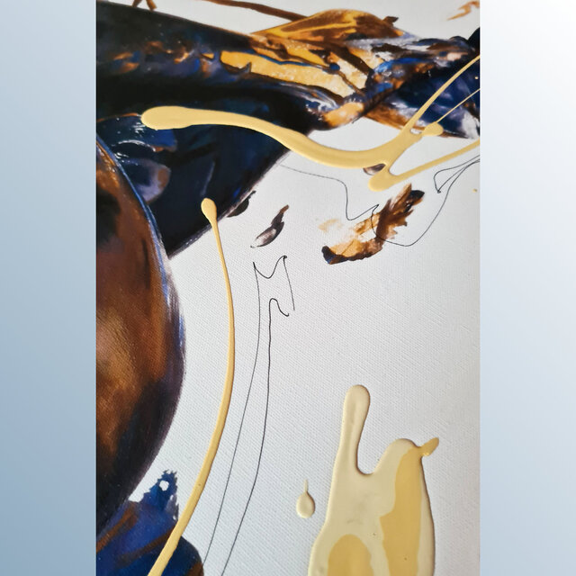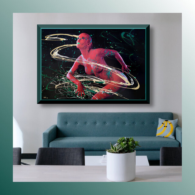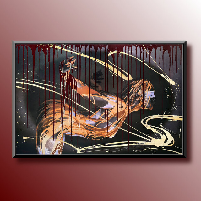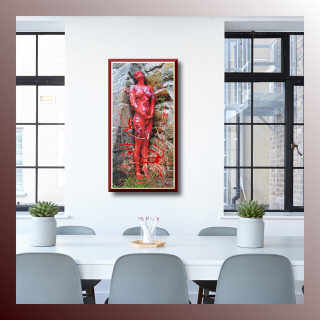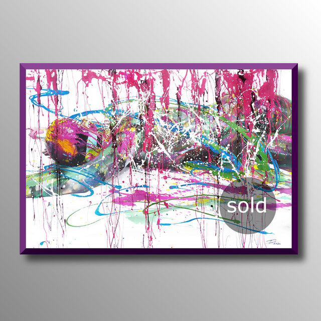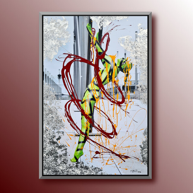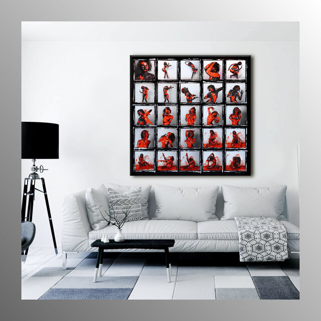 Diese Werke sind einmalige Unikate. Leinwandprints ausgesuchter Bodyart-Motive wurden in aufwendiger Anfertigung mit Acryl-Lackfarben und z.T. mit ergänzenden 3D-mixed-Materialien und -Strukturen sorgfältig gestaltet und somit zu einzigartigen Bildwerken veredelt. Eine abschließend aufgetragene, seidenmatte Firnis schützt die Farben und Oberflächen.