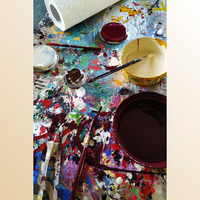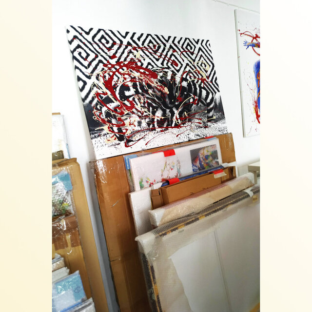 handmade artist-finished mit lacque acrylic glossy und 3D-mixed-Strukturmaterial